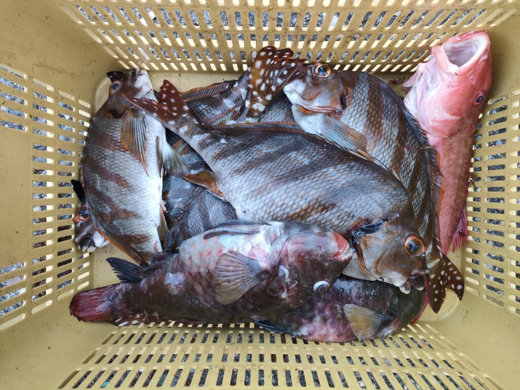 釣り初心者の私たちには、餌の付け方から引きのタイミングまで丁寧に教えてくださり、アジがたくさん40匹程度。それ以外にも、漁師さんから大きなお魚を頂き食材の調達はばっちり。